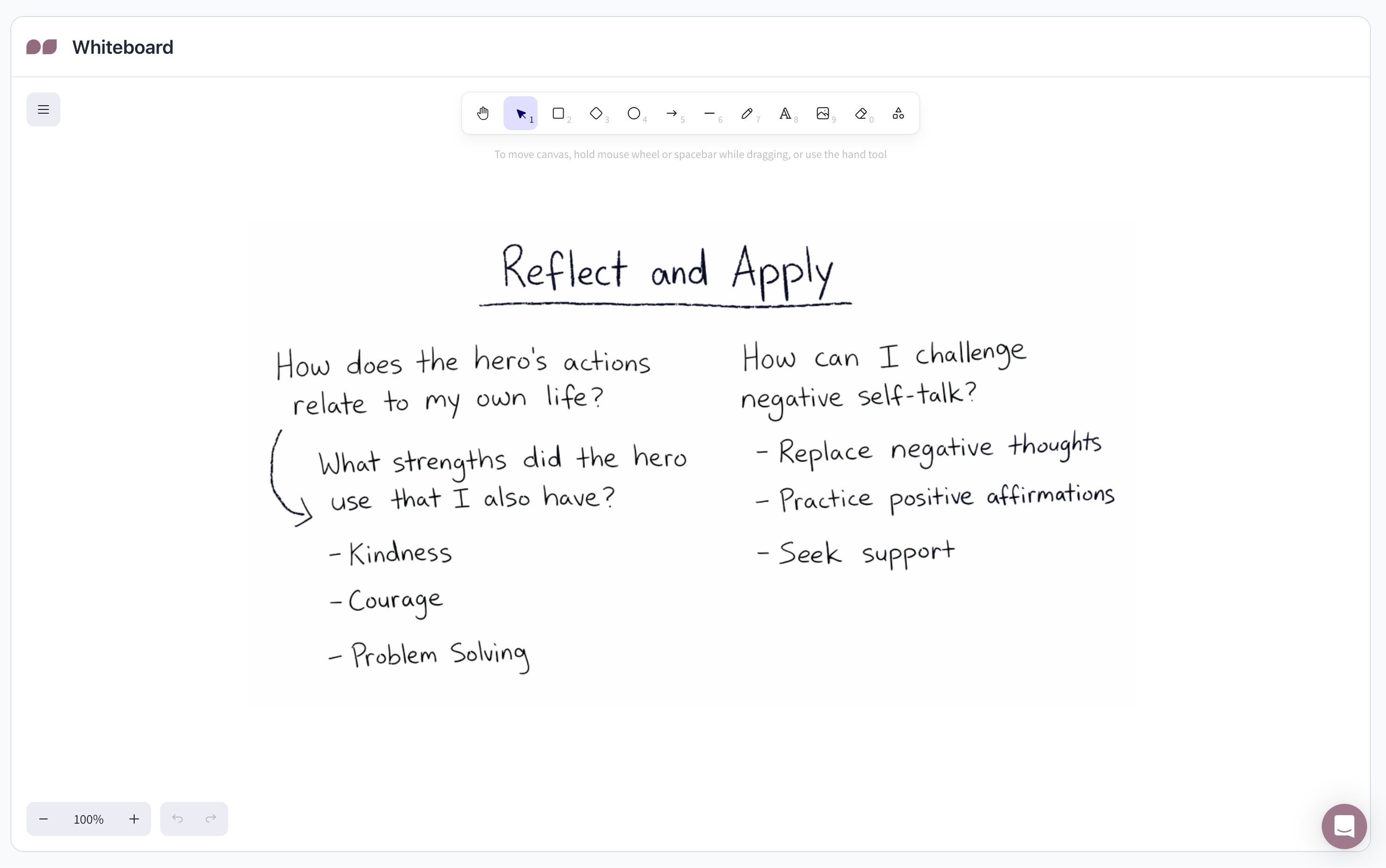 After completing the story, take time to reflect. Ask your client how the hero’s actions relate to their own life. What strengths did the hero use that they also have? How can they challenge their own negative self-talk moving forward? Use the Whiteboard in PlaySpace to jot down these insights.